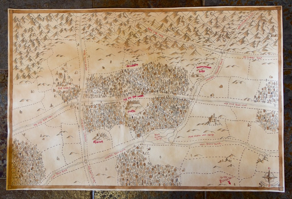 Fantastic work on the map, Nic! I really appreciate the time and thought you put into it. I also have to say your handwriting is very nice and looks Tolkien-esque. I have excellent handwriting (if I’m allowed to brag!) though mine is very bubbly and cartooning inspired so I really appreciate the style you used on the map. I couldn’t pull it off and I think its perfect for this project.