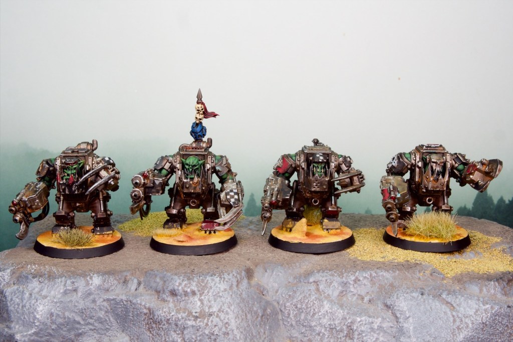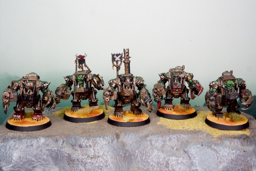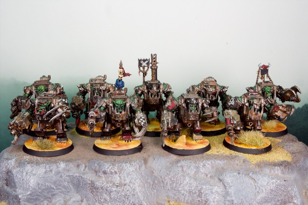 Continuing on the 100 miniature target for the 1 Million Miniatures challenge, here’s the next set of miniatures into the speed painting grinder: 9 Ork Meganobz!