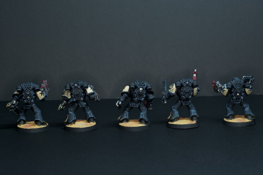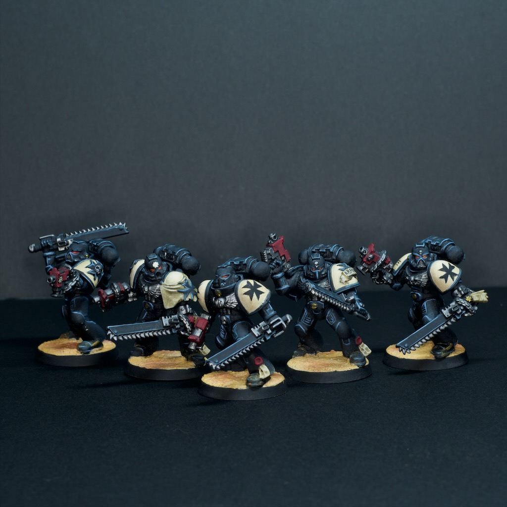 I’ve had a burst of nostalgia these last few weeks, and have been pulling out old rulebooks and old armies to look at and remember my earlier days in this hobby. One of those armies was my Black Templar space marines, that I played in 5th edition Warhammer 40,000 (somewhere around 2008-2010 I would guess). That army saw a lot of play time, and not a lot of painting time, so generally sits at the mostly base coated stage. Considering how much I enjoyed playing this army I decided they deserved some attention at the painting table and pulled out a few to throw some paint on.