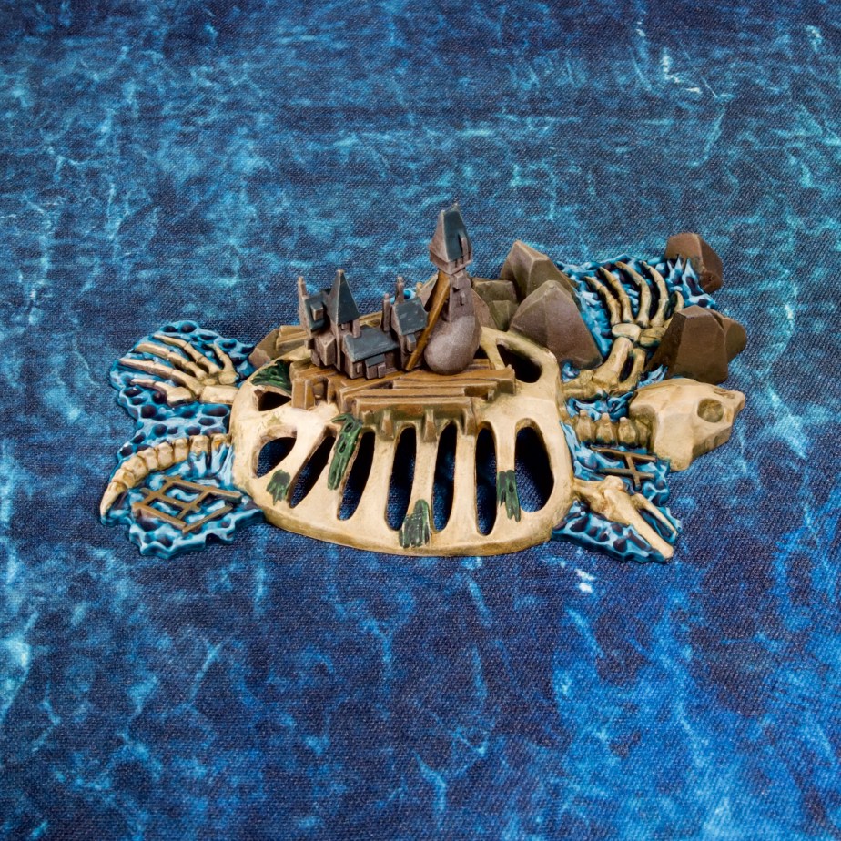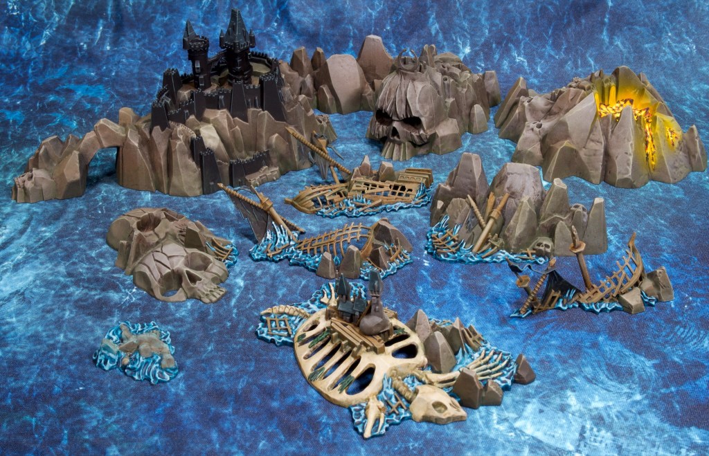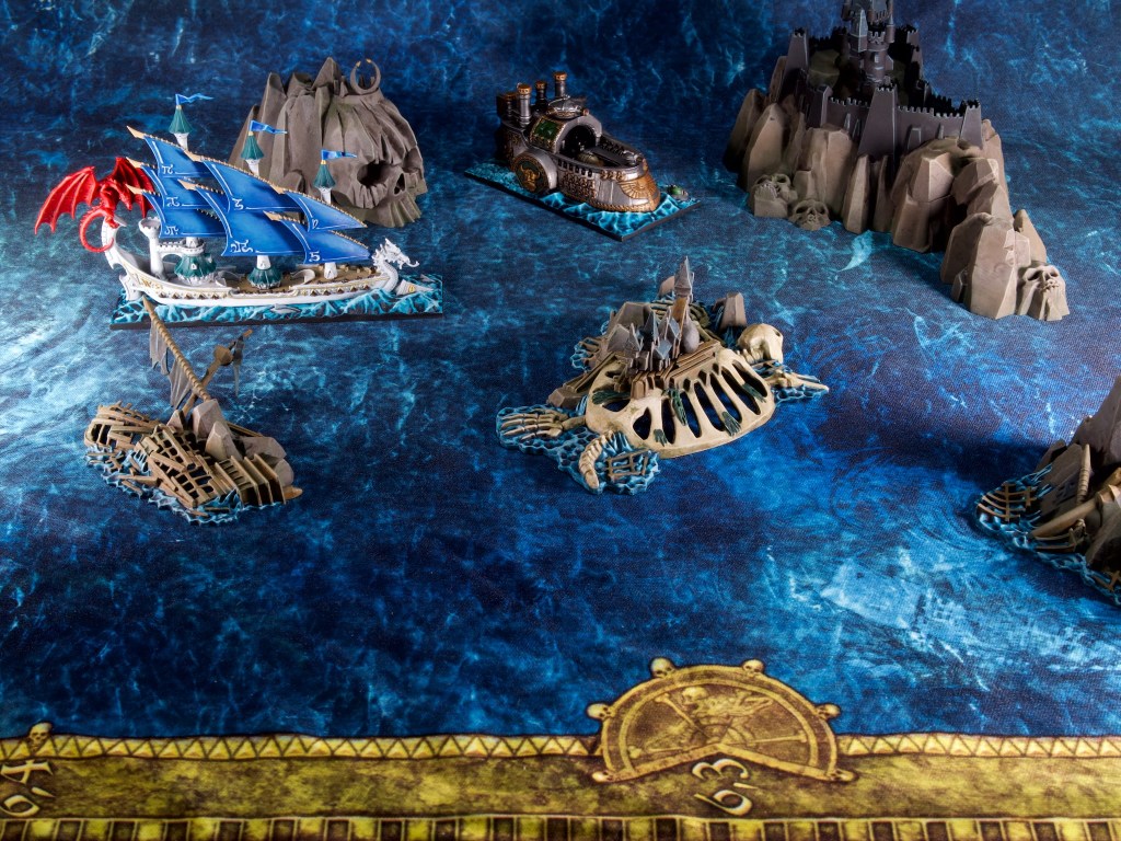 Finally here’s a shot of the terrain with the ships I painted earlier. Really gives you an idea of the fantastical scale the game’s ships are!