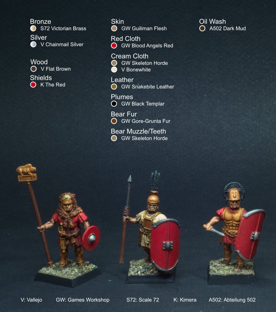 The skin was painted exactly as per the Numidians from the past post, that is with AK Tan Earth. The shields are a mix of AK Ivory, Vallejo Game Heavy Goldbrown and Vallejo Game Heavy Violet. The bronze is Scale75 Necrogold, and the silver Scale75 Black Metal, both my go to colours for those. As for the other models I went for an all over wash of Army Painter Soft Tone followed by a highlight of the basecoat colour.
