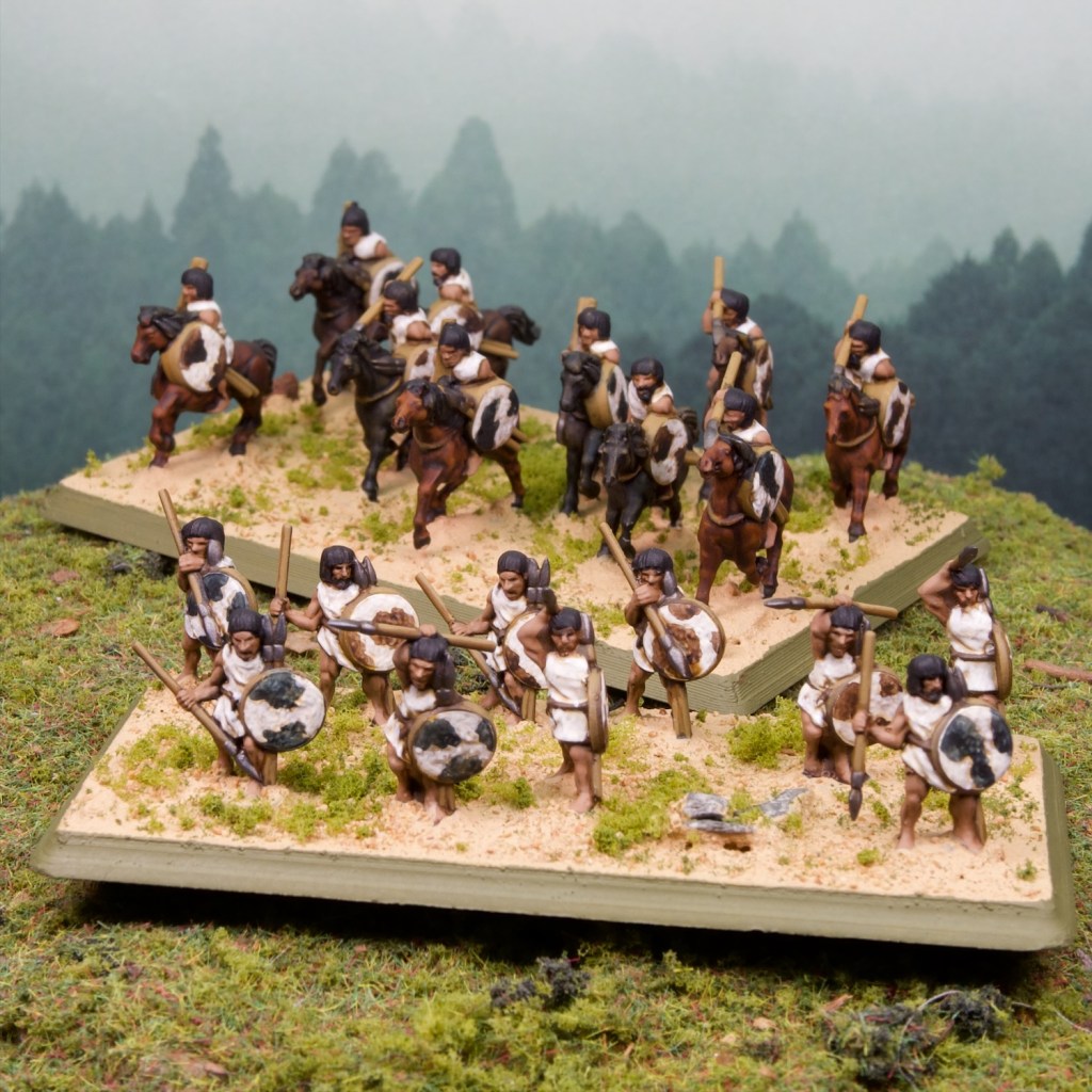 Here they are amongst the other bases I painted so far. I really like the distinction between skirmishers and ranked infantry you get at this scale. I’ve made a small dent in the Carthaginian Division set now, with roughly a third of the units painted (the rest is mostly a lot of Gauls and Iberians!).