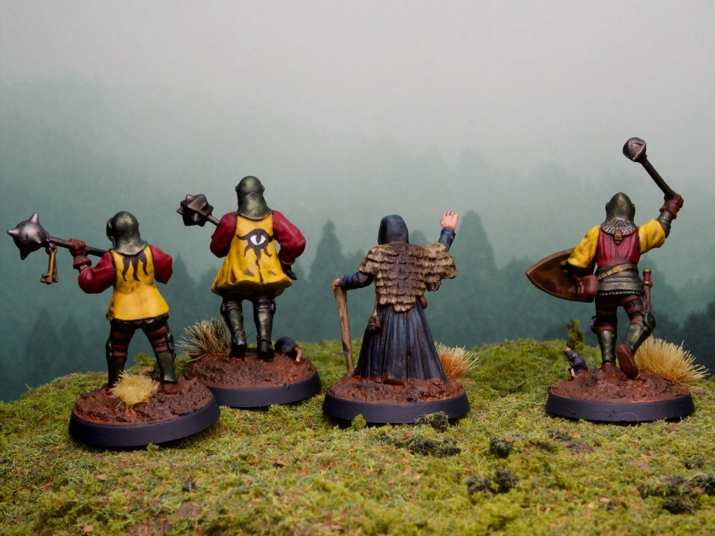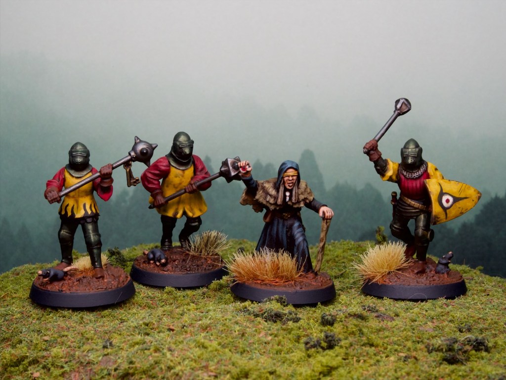 I decided that the knights are there to form the bodyguard for the seer and added some eye-related iconography to tie them all together. They were quite fast to paint, and I enjoyed myself throughout the process (kit bashing and painting!).