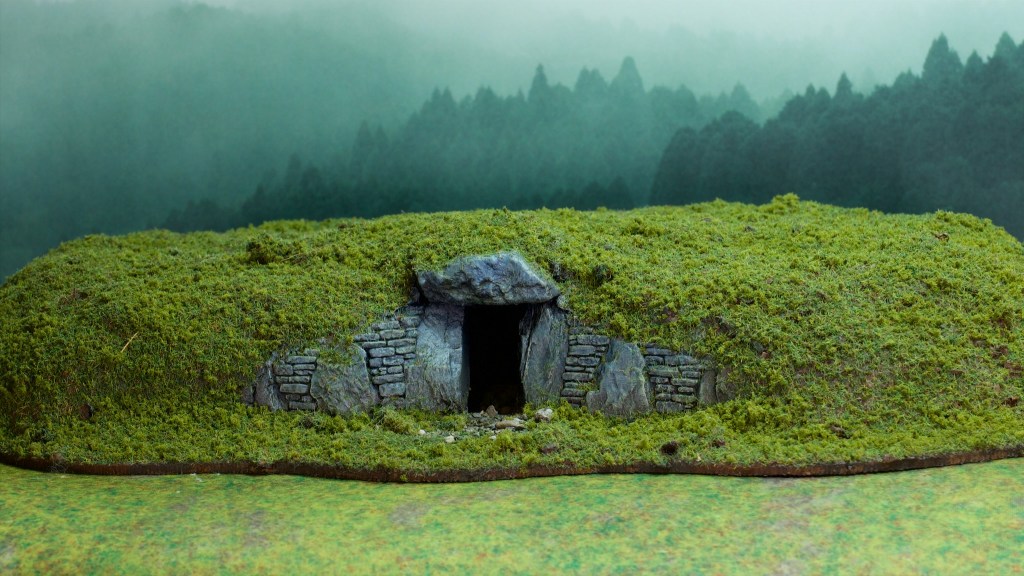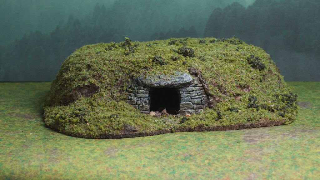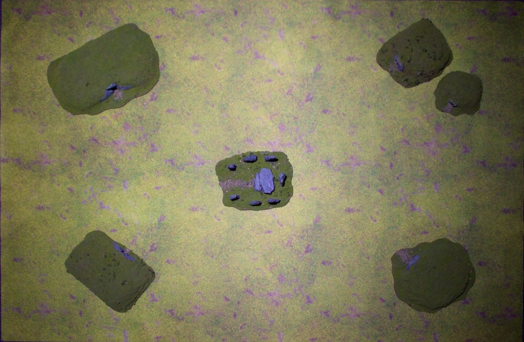You also get to see my attempts at repurposing my old Citadel grass mat, which has sat unused for years since I’ve move on to printed neoprene battlemats. It seemed a waste to not use it, so I decided to see if I could convert it for this cold setting. I hit it with patches of brown and white and then “frosted” it with a light pass of white spray paint to get that frozen grass look.