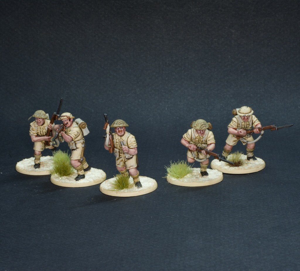 These are the Warlord Games plastic Matilda kits, more specifically their “Tank Troop” set for the Matilda which has three included for some tank heavy games. Usually a good way to get a bit of savings over buying three of the individual kit which is no bad thing. I painted these in the colours of the 42nd Royal Tank Regiment, probably the most famous desert Matildas, with model kits usually coming with the decals for “Phantom”. This kit came with enough decals for three named Matildas, Phantom included. I’m not sure if the other two are made up or historical names, I couldn’t find much (any!) info on them.