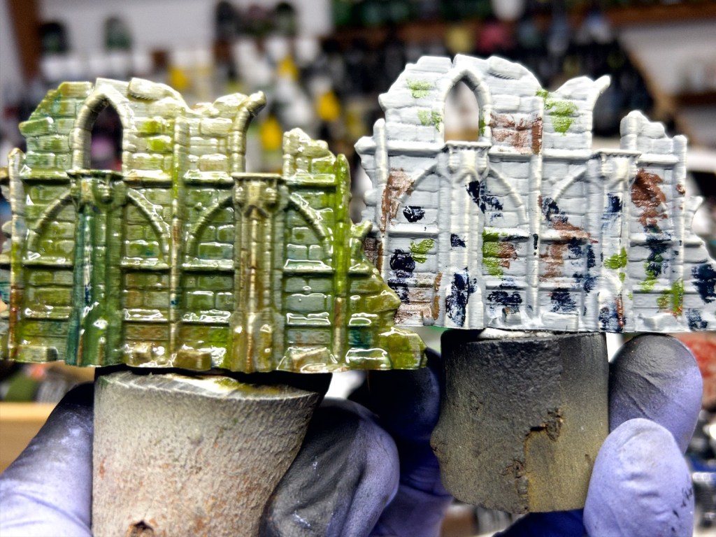 - Washed with Citadel Agrax Earthshade and highlighted with basecolour