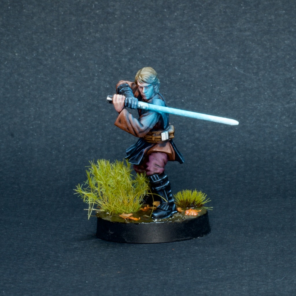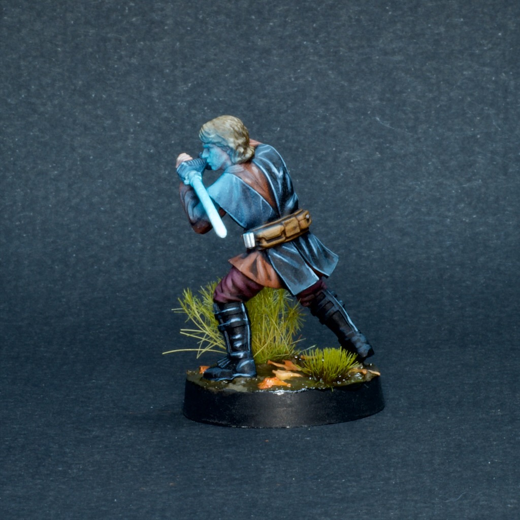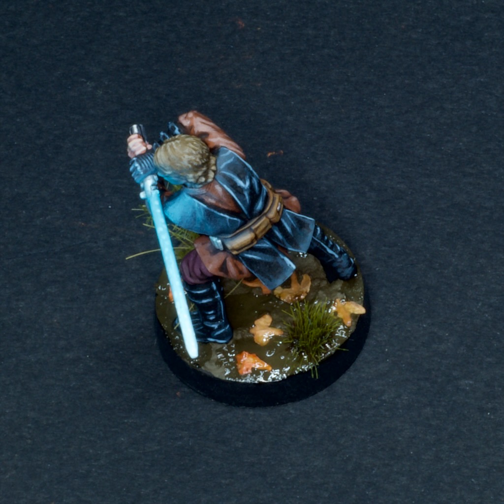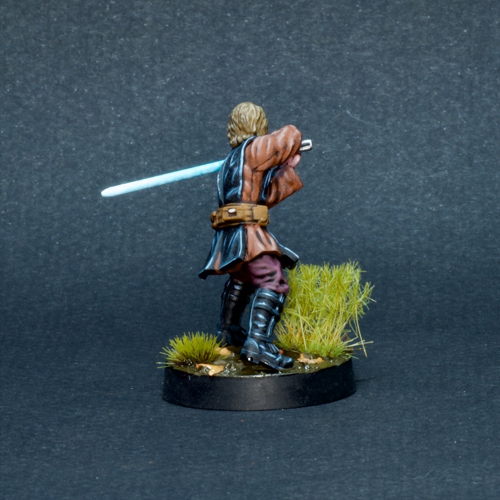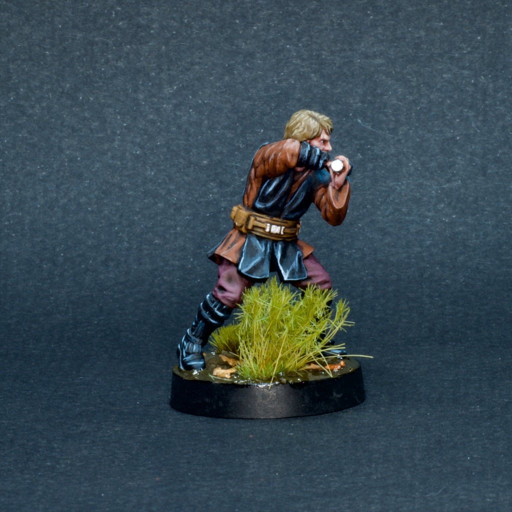 Like the other models in the starter set, he’s made of that soft boardgame plastic which is honestly not super fun to build or paint, especially when compared to the newer hard plastic models in the game’s range. I struggled to get the lightsaber to stay straight, and it definitely looks a bit wonky from some angles.