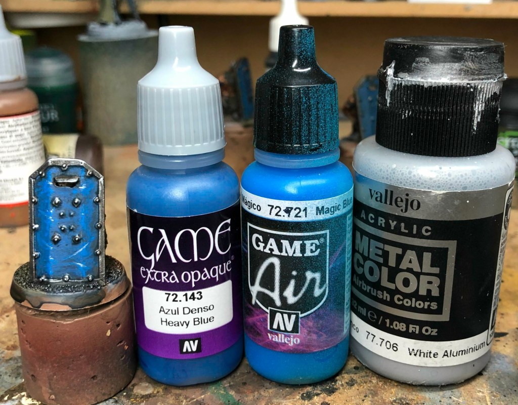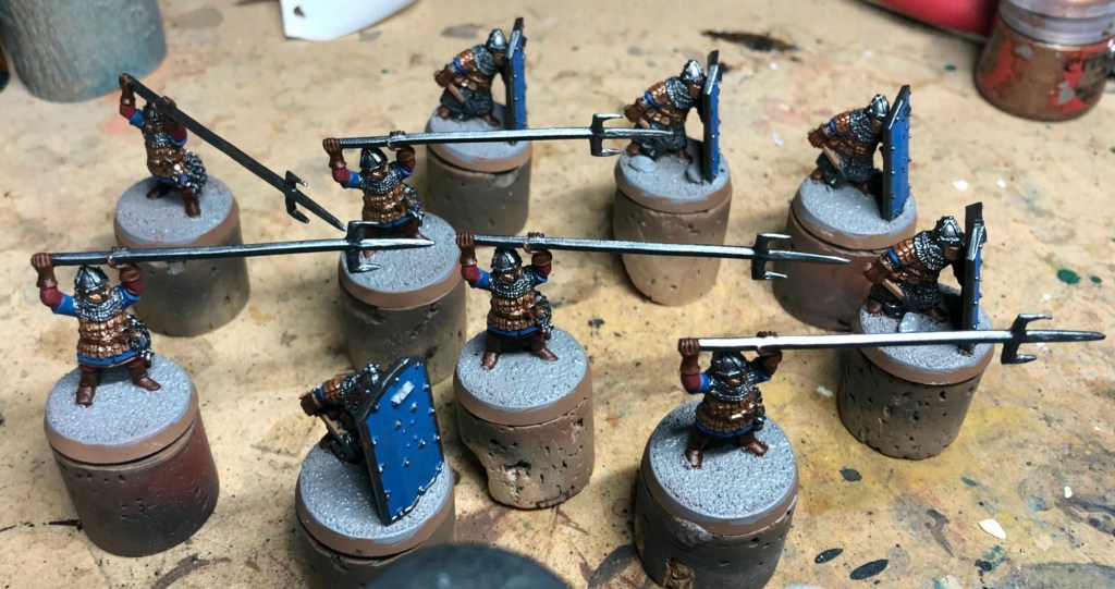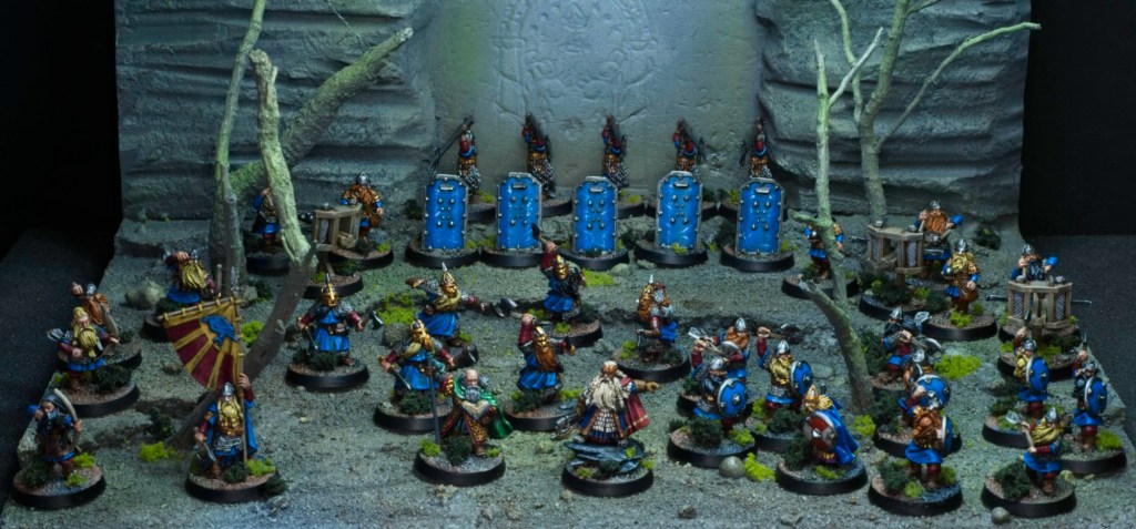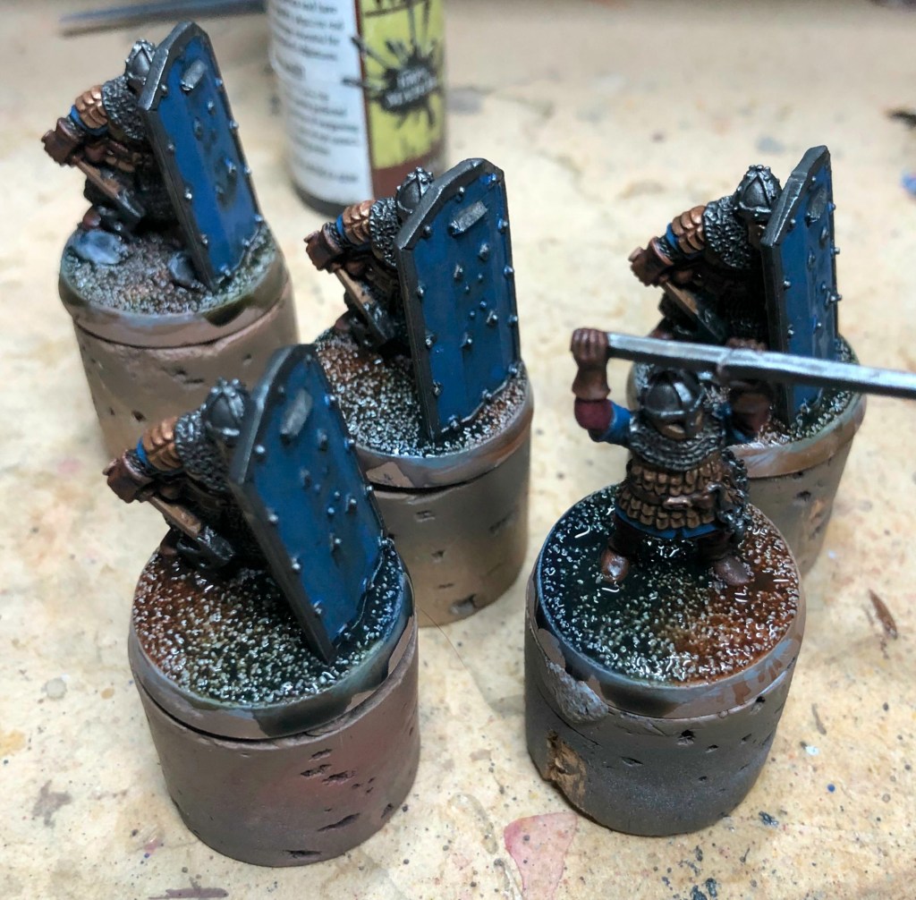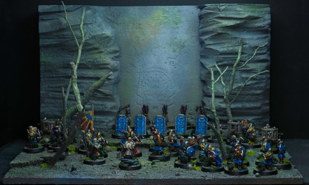 I wanted to re-create the famous Durin’s Door, probably one of the more recognisable Lord of the Rings visuals, but not all lit up as it is mostly seen in the movies, but the simple engraving it appears at at the start of the scene. I also wanted to match the bases of my army, which have greys tinted with greens, brown-reds, and blues.