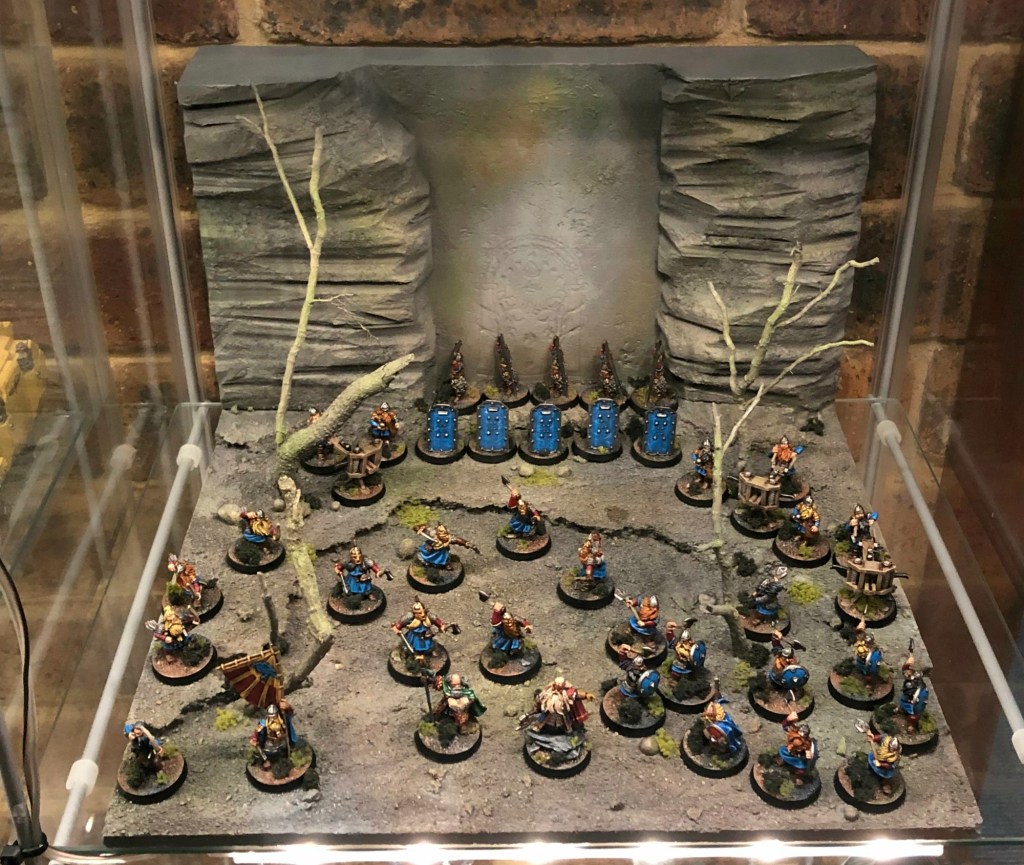 I’ve been working on this board for a little while, mostly while stages on the dwarves themselves were drying. The idea was to make a display board to take to tournaments, that also doubled as a place to put the models at home. This meant it had to fit in my display cabinet, the ubiquitous Ikea glass cabinet, which has shelves roughly 30cm x 30cm. This is quite small for a display board, but this is a pretty elite army so the model count is relatively low, so I wasn’t too worried about managing to fit all the models.