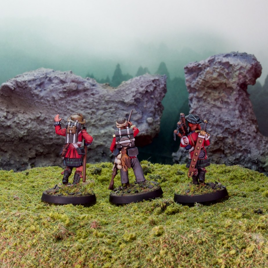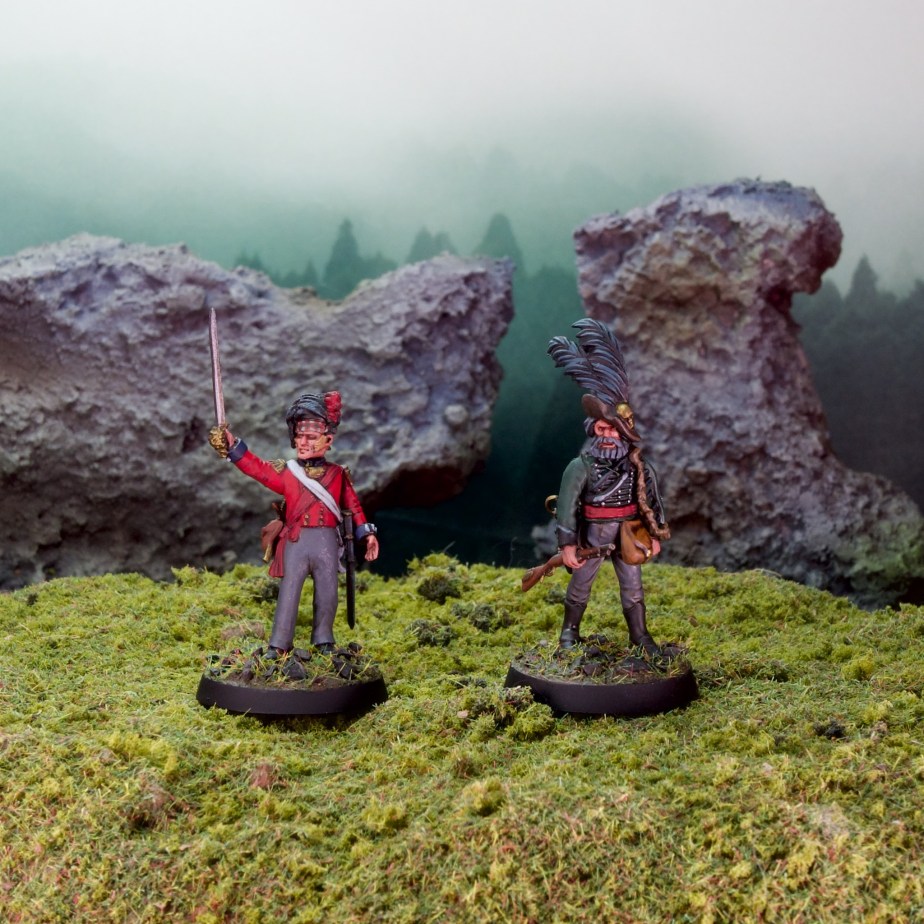 I wasn’t expecting to be working on this this week, but when inspiration strikes, seize it! I’ve been looking at running Rangers of Shadowdeep for my usual roleplaying games group, and while reading the books and doing some research I remembered one of Joseph McCullough’s other games that interested me while back: The Silver Bayonet. The Silver Bayonet is a skirmish game pitting Napoleonic era units against each other as well as against monsters brought about by the horrors of the constant wars of the era. This renewed interest in the game coincided with my reading of a book on the founding of “New France” (Canada/Quebec), so I was primed for some musket-based action. The game is really easy to pick up so I quickly threw together a unit roster (which can be up to 8 models), and started kitbashing!