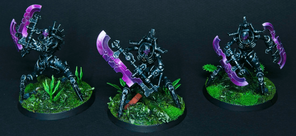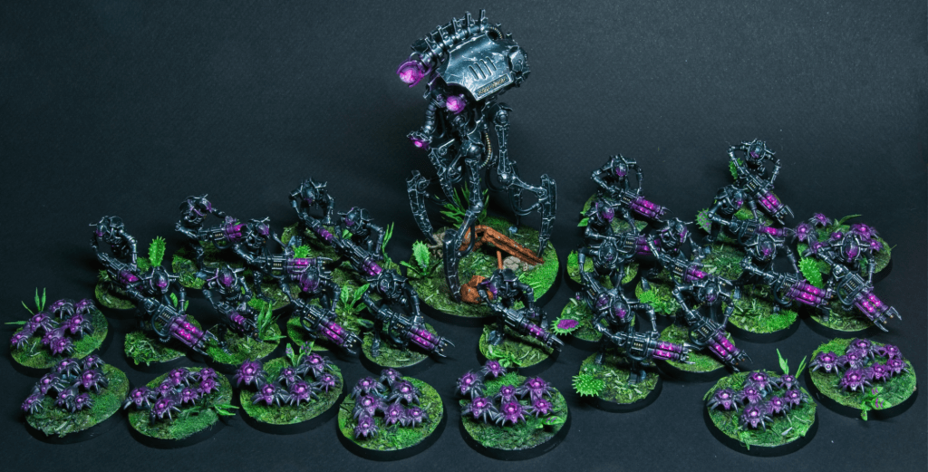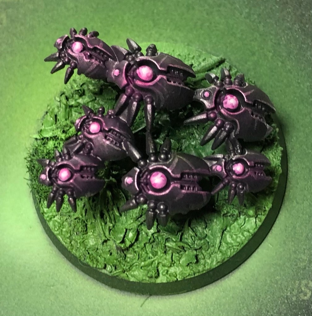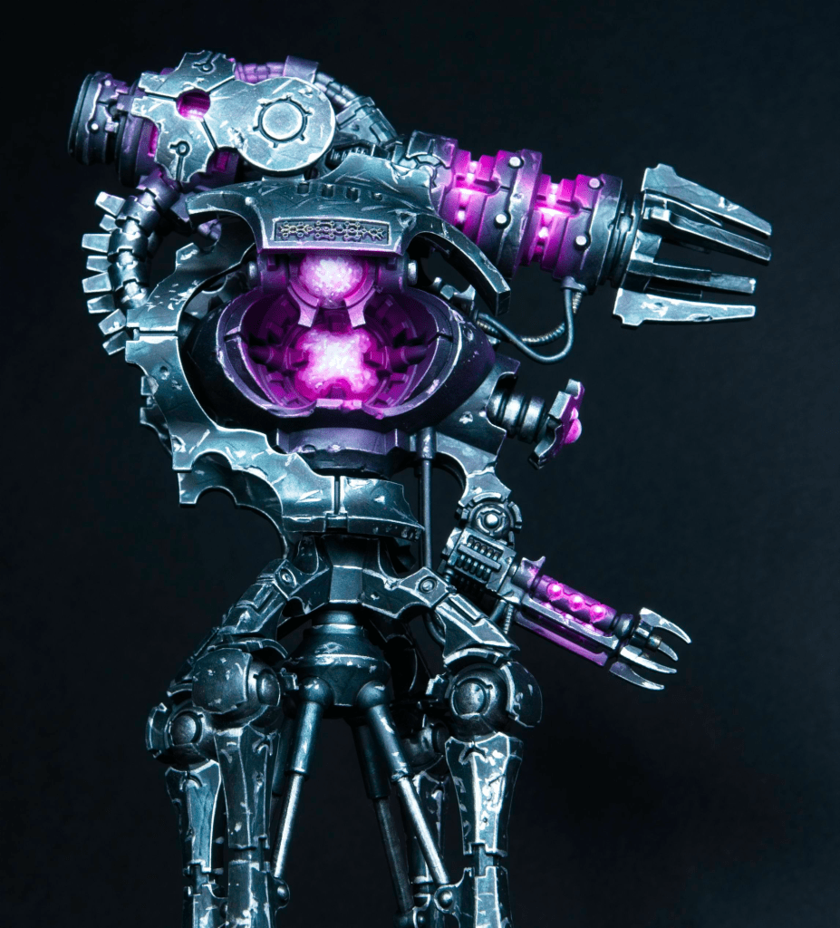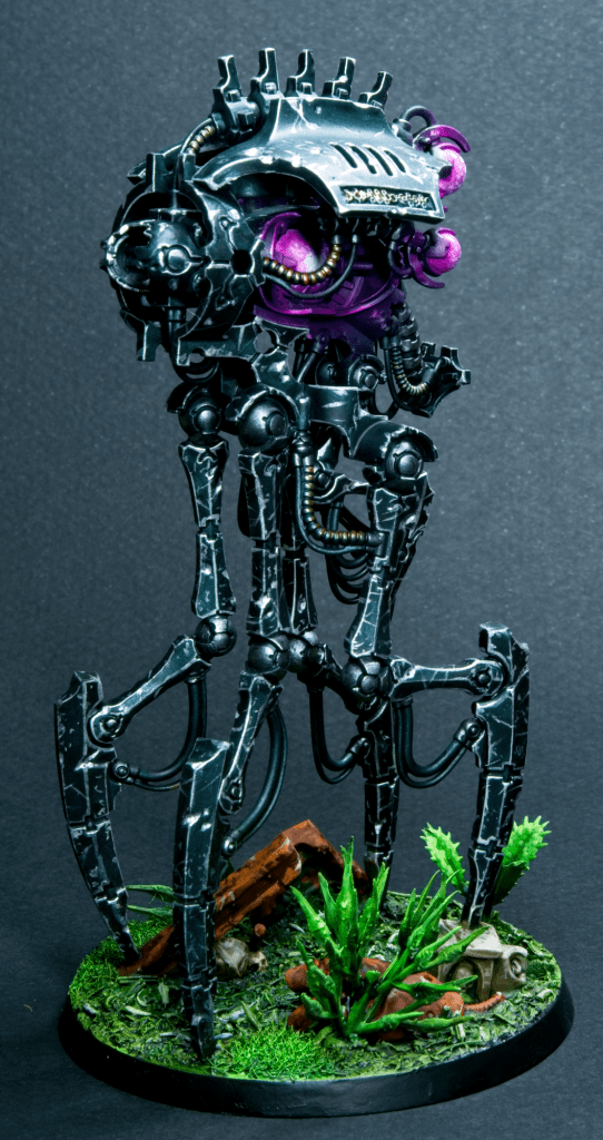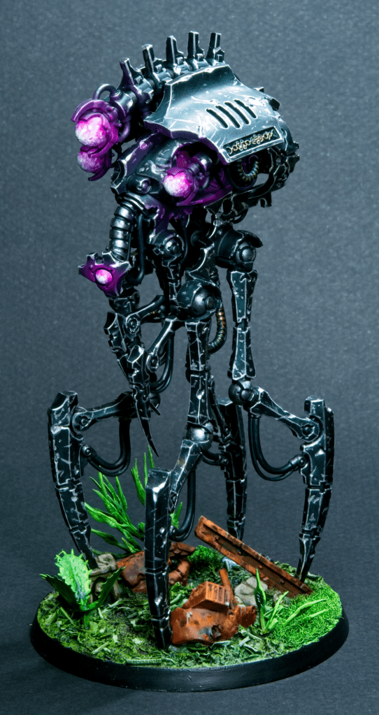 This model is very cool, incredibly imposing, and was pretty fun to paint. Each arm has a different weapon, which adds a lot of variety, and he ended up with every technique I used on the army (glowing weapon, glowing orbs, and power sword), which seems fitting as he leads it.